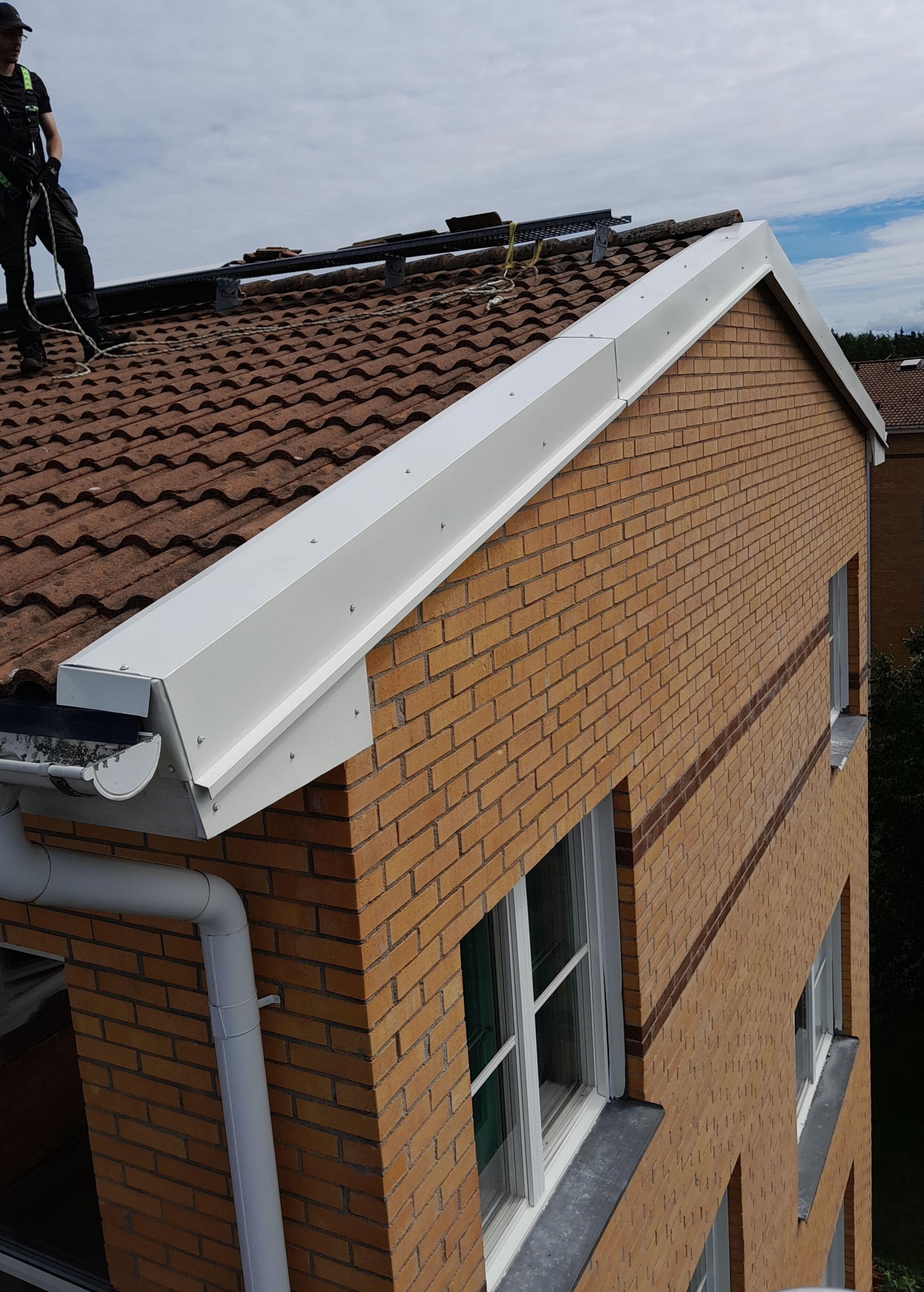 Före takrengöring Mekanisk bortskrapning av mossa, kembehandling med lågtryckspruta, tömning av hängrännor och byte av spruckna pannor ingår alltid.
